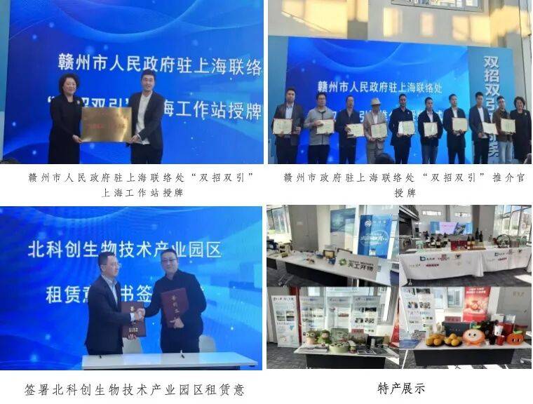 1、举行了 “赣州市人民政府驻上海联络处‘双招双引’上海工作站” 授牌仪式,该工作站正式落户北科创生物技术产业园。