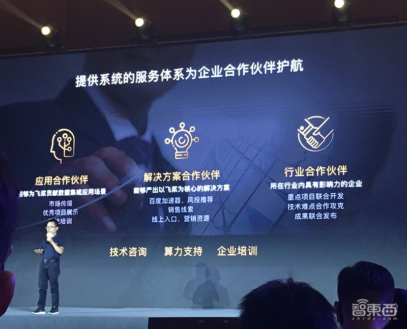 同时,飞桨为合作伙伴提供系统的服务体系,还帮助高校和教育伙伴构建完善体系,为开发者提供不同层次的培养体系。