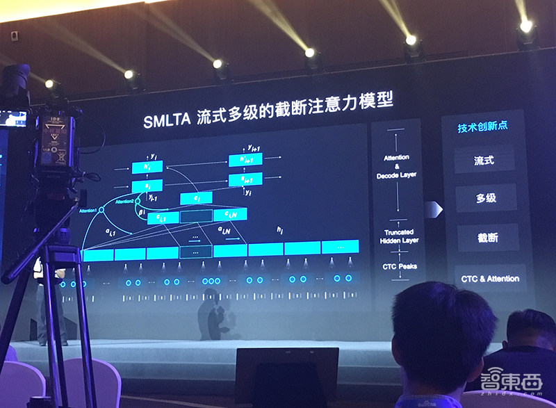 百度主要做的创新是,先动态将一个完整的语音切分,将整句识别变成一段一段的流式识别,在此基础上使用多级注意力模型,构成其SMLTA技术。