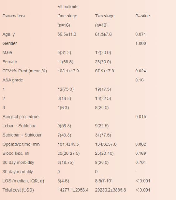 中日友好医院韩宇教授团队也在EVOLUTION IN MITS专题进行了一项口头报告。这项前瞻性临床试验(ChiCTR2300071198)的中期数据和初步分析结果显示,在经过选择的患者中,同期和分二期电视辅助胸腔镜手术(VATS)治疗双侧多发肺结节均安全可行,同期手术在减少住院时间和费用方面具有潜在优势。研究者表示,该研究还需要纳入更多患者并进行长期随访,以探讨同期手术是否能带来生存优势[10]。
