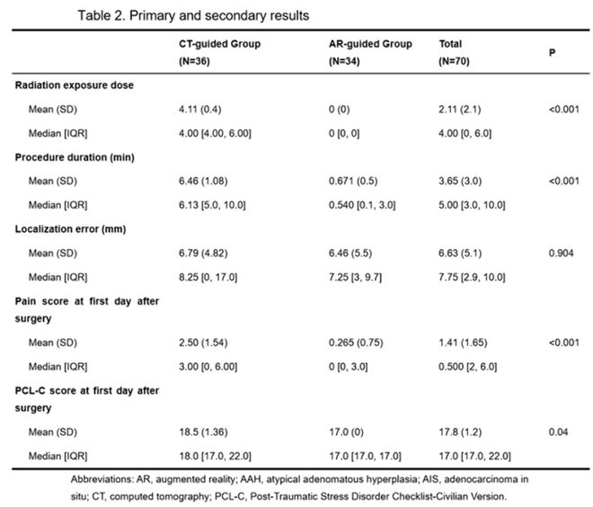 团队的另一项多中心、前瞻性、随机对照、非劣效性试验(NCT06548451)被选入PRESIDENTIAL SESSION专题,作为口头报告进行了汇报。该研究结果显示,与CT引导肺结节定位相比,AR引导肺结节定位在手术切除成功率和安全性方面达到了等效水平;此外,AR引导定位在患者恢复方面具有优势[6]。