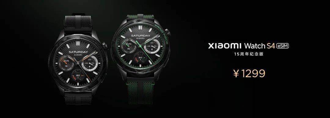 小米手表S4 eSIM 15周年纪念版有两个颜色:黑色、绿焰,售价均为1299元。