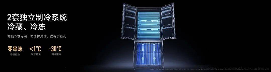 最后,这款法式冰箱还支持双系统配置,冷藏、冷冻搭载了两套制冷系统,能做到食材互不串味,控温更精准。