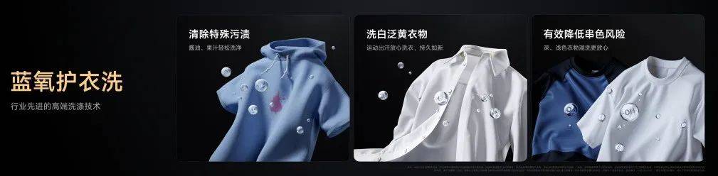 此外,大筒专门配置高端蓝氧洗技术,不仅能清除特渍防串色,还升级了净白能力,衣物久洗不易发黄,甚至是已经发黄的衣服也可以有效洗白。智能洗衣算法上也做了贴心升级,比如精准称重,1 件轻薄衣物也能精准识别,水和洗衣液投放更准,少残留更健康;还有智能脱水,洗烘更快更安静。
